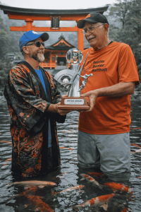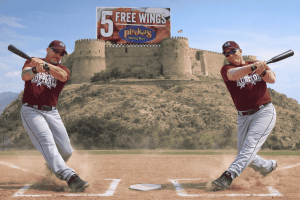 1 2 3 4 BUFFET FINAL Red 5 0 1 1 3 10 Orange 2 3 5 5 X 15 Pitchers: Red – Trent Peacock; Orange – Tommy Deleon. Mercenaries: Red – Ray Pilgrim and Scott Wright; Orange – David Brown. Umpires: home – Jim McAnelly; bases – Clint Fletcher. Perfect at the plate: Red – Tim Coles (3 for 3 with a double), Anthony Galindo (1 for 1 with a triple and two walks), and Johnny Lee (2 for 2 with a walk); Orange – Hal Darman, Tommy Deleon, and Ray Pilgrim (all 3 for 3). Ohtani Award: Tommy Deleon (1).