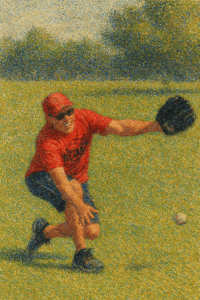Rolando Rodriguez makes the game-ending catch, as rendered by Georges Seurat, because it was a work of art.