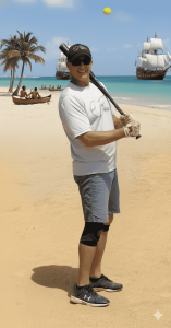 Peter Sundquist followed with a fly to his Red teammate Jack McDermott in left field, deep enough to score Larry’s pinch-runner from third. Jimmy Sneed for the second time in as many at bats lofted a foul pop down the third-base side; George Romo made a very good catch, hard by the fence, for the second out; Tommy alertly tagged up and took second on the play. Matt Levitt walked. Larry Fiorentino slashed a ground ball past third base and into left field for a double, Tommy scoring and Matt taking third. That cut Maroon’s lead to 14-8. But the game ended on Raul Deleon’s fly to Peter Atkins in left-center.