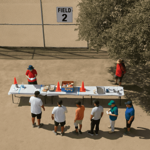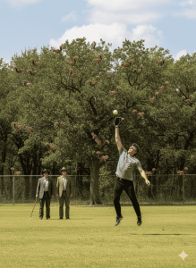 (Also, not for nothing, why is it nigh-on impossible to get Google AI studio to show an umpire making a raised-fist out call?) Both Peter and I called it an out, and Ken and Bobby tagged up and advanced on the play, Ken scoring. But then Tom Kelm asked Mike whether he’d made a clean catch, and Mike truthfully answered that, in fact, he had not – the ball definitely hit the ground, he had trapped it. (In our defense, Peter and I have seen Mike catch balls at shoe-top height, so we were primed to give him the benefit of the doubt.) What to do? Well, we’d made a unanimous call, time had been called, the runners had stopped running… We decided to let the call stand and have the game continue. Tom Kelm wasn’t happy in the moment, though I will note that he was at pains to apologize to me after the fact, not that any apology was needed – in point of fact, Tom wasn’t wrong; we just decided that the perfect was the enemy of the good enough and couldn’t we move this along and get to eating Bruce Barnett’s hamburgers? (Incidentally, Tom subsequently sent me this link – https://macshieldonline.com/