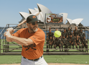David managed to pick himself up and get to second, commencing a rally that saw each of the next five Orange batters hit safely, with Peter Atkins and Steve Sandall knocking run-scoring doubles.