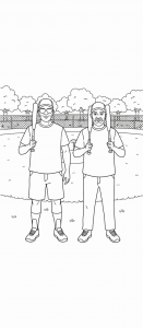 Henry Flores led off the fifth with a single, another line drive to left field. Nothing but line drives off Henry’s bat all day today – it’s worth mentioning that Henry was perfect at the plate in each of the day’s first two games, as was Steve Sandall, achievements which I’ve commemorated by creating the following image for you all to color in yourselves: