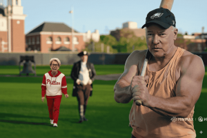 (Weird that David didn’t mention the appearance of Philadelphia Karen, fresh from swiping a home run ball from a nine-year-old, after she unexpectedly rushed in from the third-base side to try to grab the home-run ball from Jim and replace it with a ball she’d taken from the visitors’ dugout bucket. All for naught, as it wasn’t a home run anyway, I guess is why David didn’t bother bringing it up. Back now to his recap…)