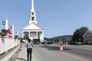 It’s been a fun vacation week in New England so far, this past weekend-plus spent in Stowe, Vermont. Mrs. Keggy informs me that this is Shoulder Season, which means in between summer and peak foliage, after school has started, so a bit less crowded and a somewhat older set of vacationers, as can be seen wandering around the church in downtown Stowe: