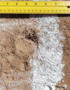 This picture of the mark the ball left is untouched; I had AI add a ruler for scale, and hilariously, ChatGPT counted the inches 1, 2, 4, 5, 6, 6, 4. (It didn’t do any better on the other two iterations I tried before giving up: 1, 3, 4, 5, 6, 6, 4 and 1, 3, 4, 5, 6, 7, 7. Don’t even look at the centimeter count. It makes me think the AI apocalypse may not be quite so nigh.) Anyway, the picture is oriented so foul territory is to the left, fair territory to the right. You can see the circular mark that the ball left when it landed, the center of the mark lined up at “4” (the first “4”, oy) – clearly the ball hit the line, and therefore was fair. David Brown stopped play to go out to the spot and examine the evidence, and kudos to him for taking the time to get the call right.